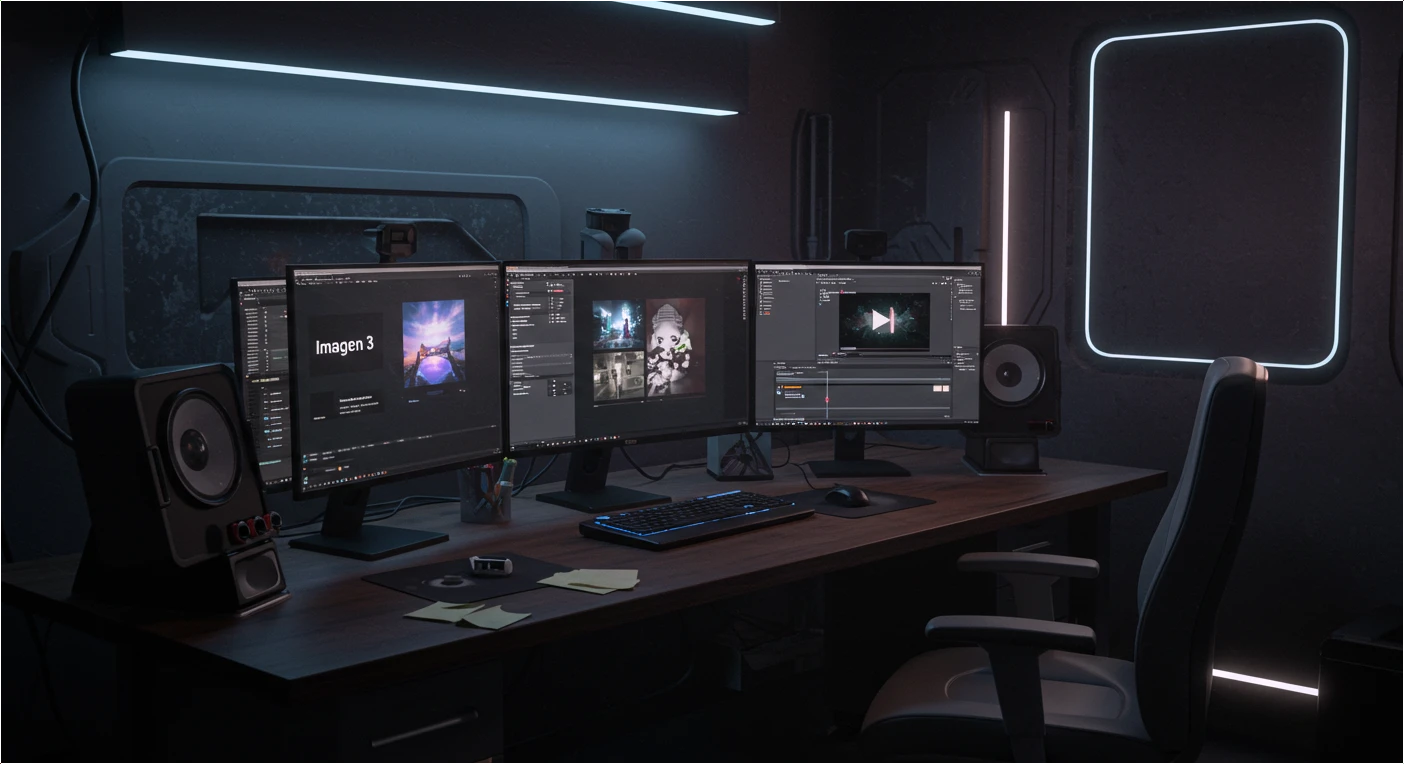Gemini와 Imagen, Veo가 한 플랫폼 안에 통합된 점이 가장 큰 차별점입니다. Midjourney+Runway+GPT를 한 번에 쓰는 느낌이라고 보면 됨!